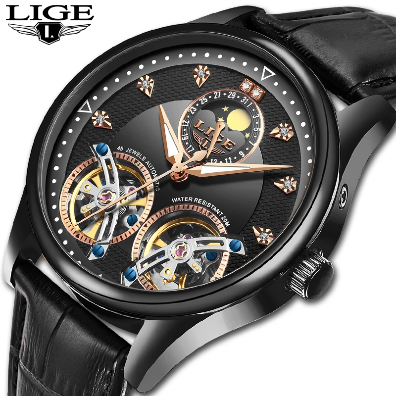REVIEW TOP SELLER Reloj LIGE Men Watch Mechanical Tourbillon Luxury Fashion Brand Leather Male Sport Watches Men Auto